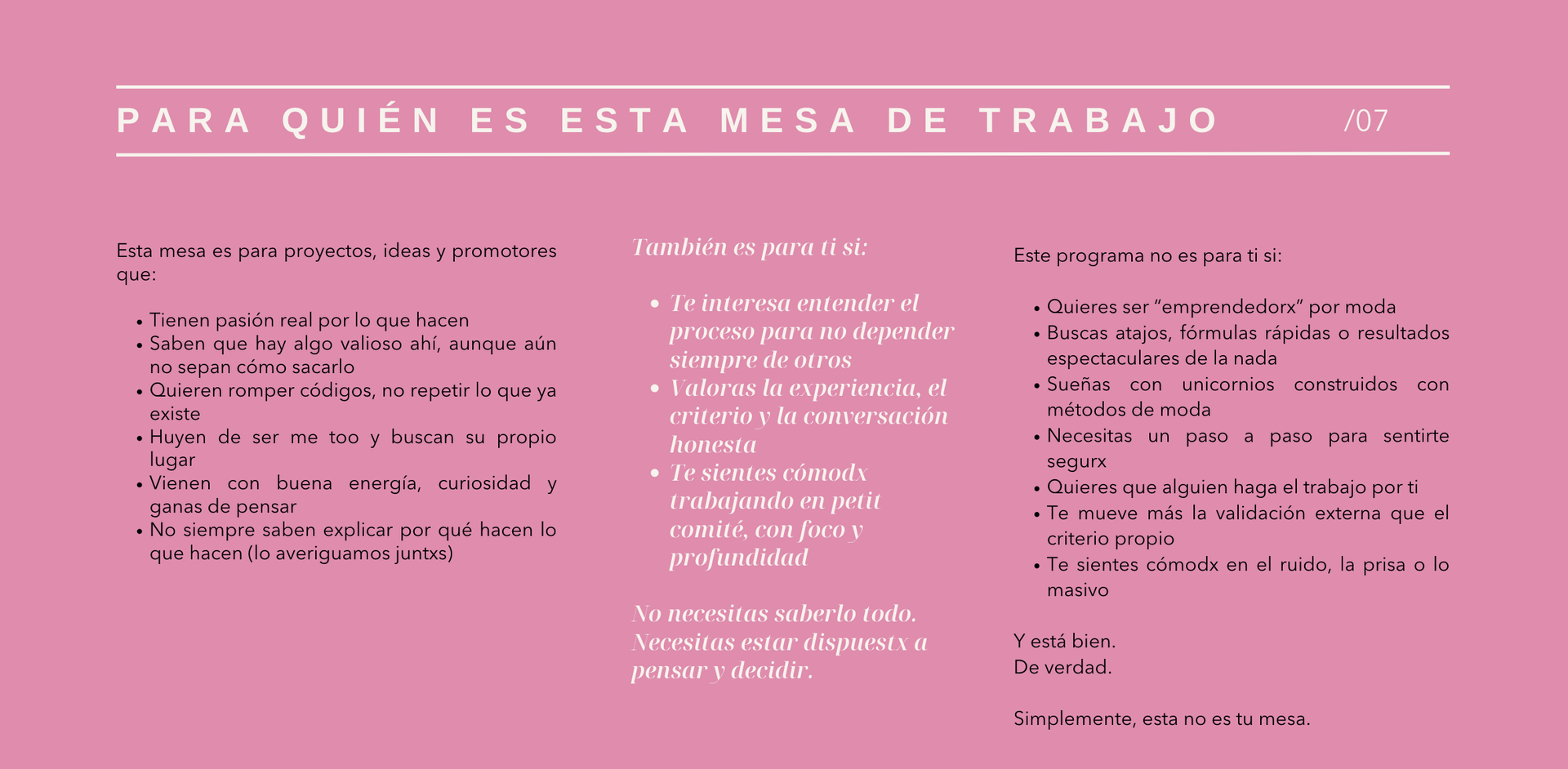 No. Es para personas con proyectos reales que quieren construir algo con sentido, sin ruido y sin atajos.